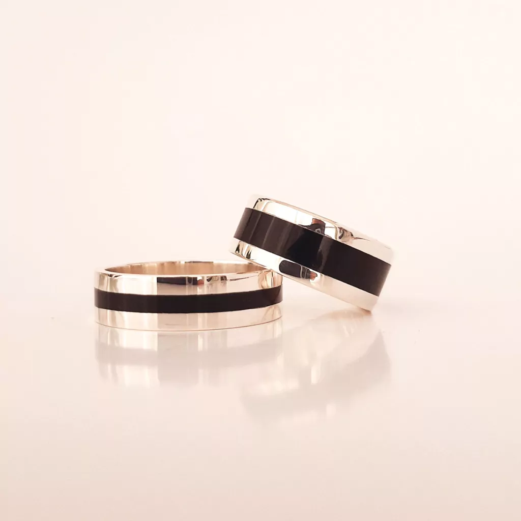 La madera de ébano es sagrada para los africanos, al combinarla con plata obtenemos unas alianzas modernas, elegantes, con estilo único, especial para la ocasión.