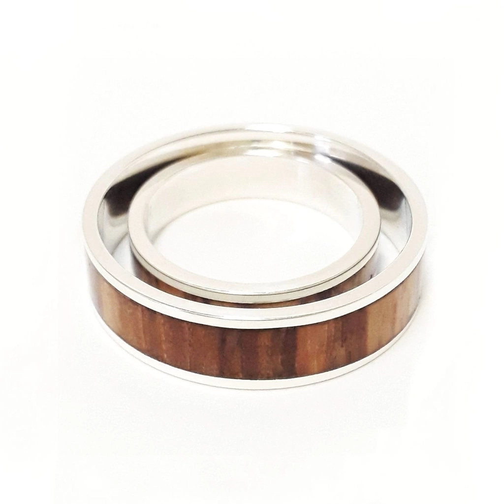CARACTERÍSTICAS SET DE ALIANZAS 6MM Y 5MM DE PLATA 925 Y MADERA DE ZEBRANO (incluye estuche):